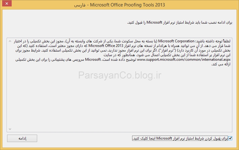 گزینه پایین پنجره را تیک زده و دکمه ( ادامه ) را کلیک نمایید.